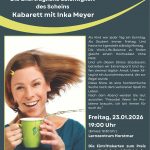 Kult:UhrZurück in die Zugluft!Die unerträgliche Seichtigkeit des ScheinsKabarett mit Inka Meyer Als Kind war jeder Tag ein Sonntag.Als Student immer Freitag. Und heute ist irgendwie ständig Montag.Die Work-Life-Balance zu finden gleicht einem Hochseilakt ohne Netz.Und um diesen Stress abzubauen, betreiben wir Extremsp , … - 24Generalversammlung – 2025 – Schützenbruderschaft St. Katharina 1516 Horstmar e.V.18:30 – 23:00