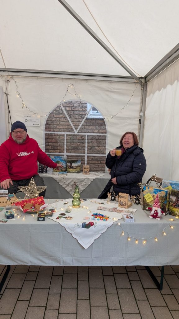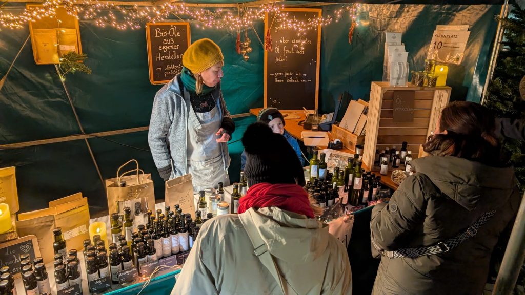 An rund 18 Ständen boten Händler:innen, Vereine und Kunsthandwerker:innen ihre liebevoll gestalteten Produkte an – von handgefertigtem Schmuck, Holzarbeiten, Strickwaren und Dekoartikeln über Marmeladen, Chutneys, Feinkostöle in Bioqualität bis hin zu Gesellschaftsspielen und kleinen Geschenkideen.