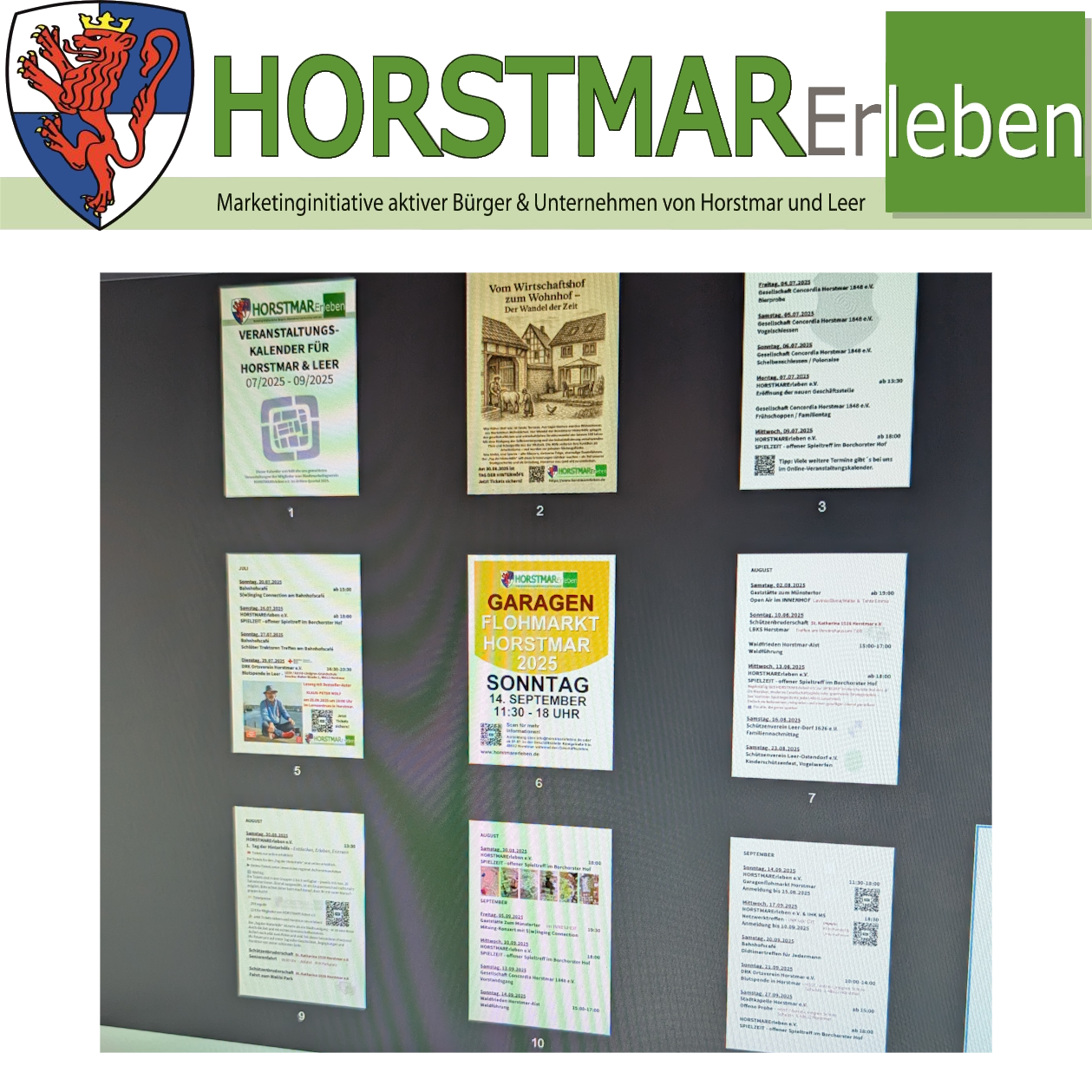 Ein aktuelles Beispiel: Auf dem Bildschirm in unserem Büro sind gerade die Druckdaten für den neuen Veranstaltungskalender zu sehen – ein Projekt, das bei uns seit Anfang des Jahres regelmäßig in liebevoller Detailarbeit entsteht. Der Kalender bietet einen Überblick über die zahlreichen Termine unserer Mitgliedsvereine und Unternehmen in Horstmar – von Konzerten und Märkten über Vorträge bis hin zu Aktionstagen.